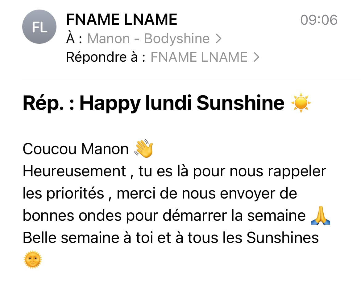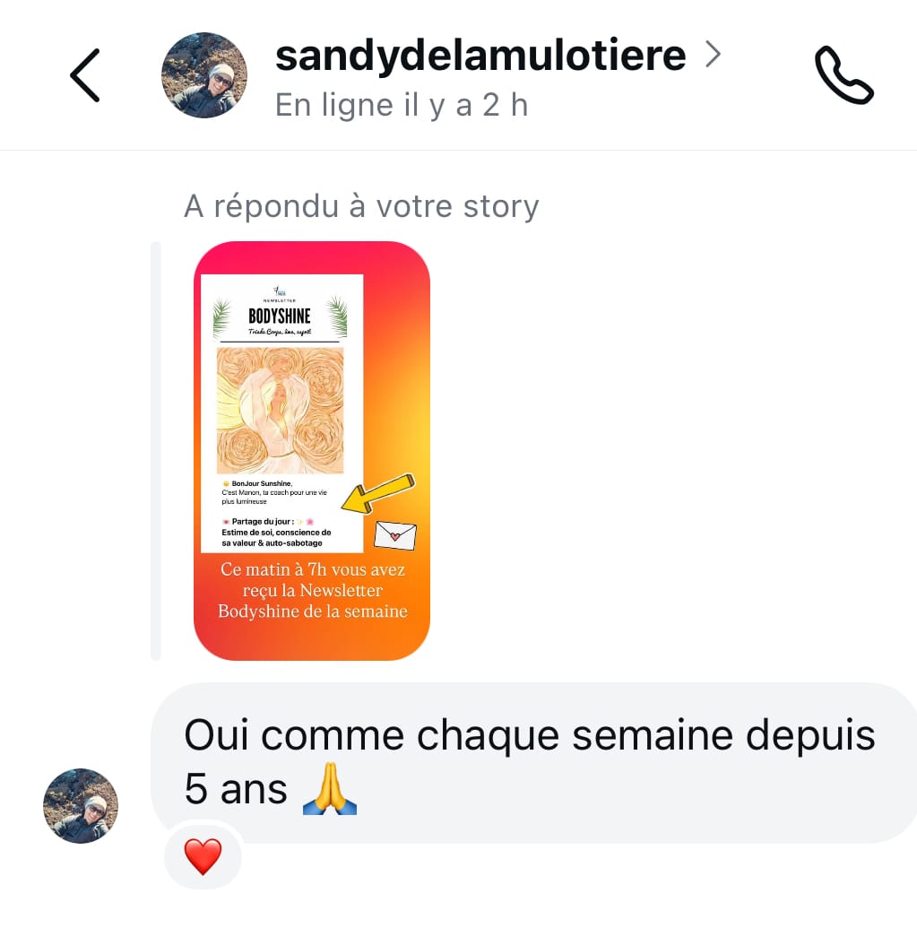 Des conseils bien-être et des réflexions lumineuses chaque lundi à 7h dans votre boîte mail. Souscrivez gratuitement à ma Newsletter dès maintenant.